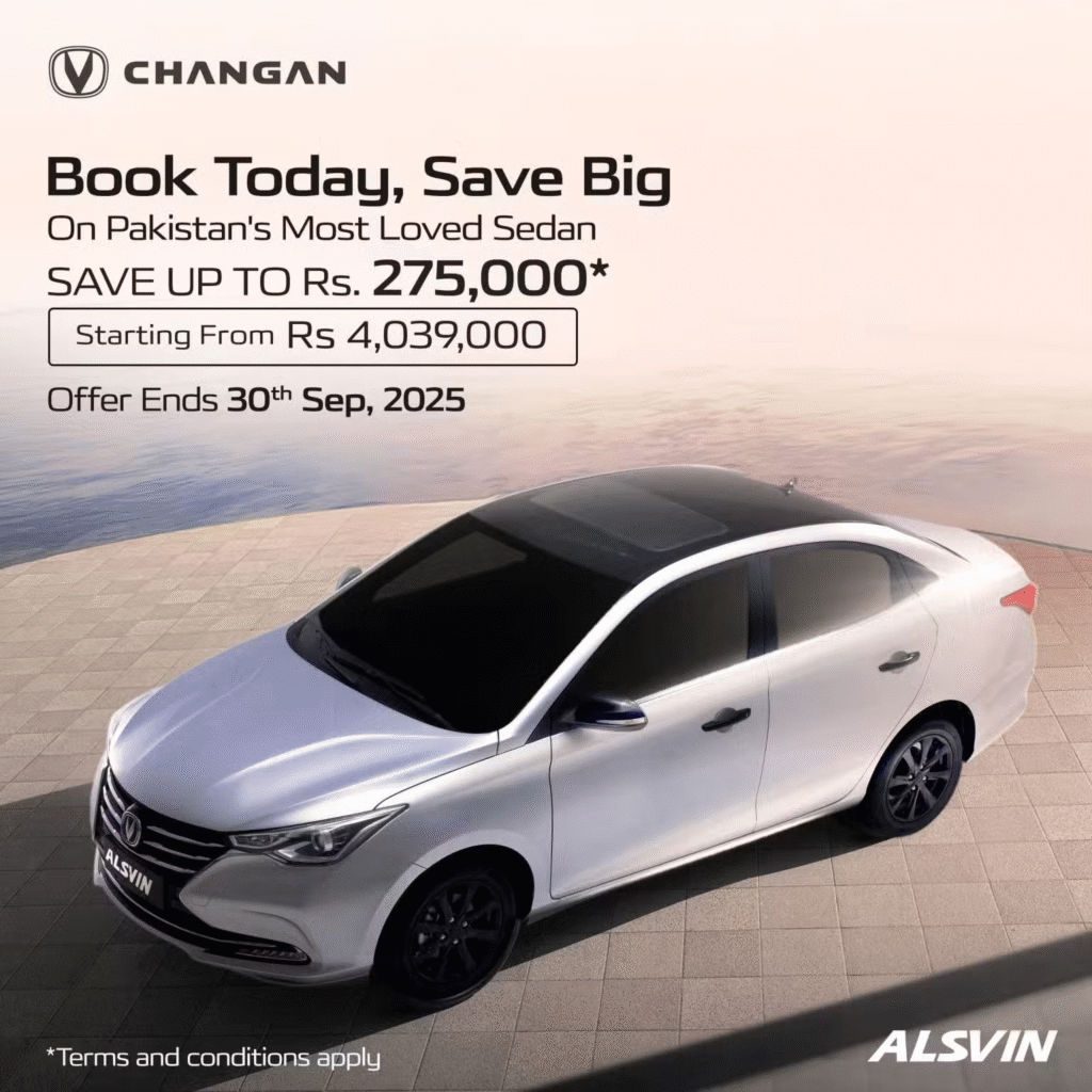 Changan Alsvin, jo apni stylish design aur fuel efficiency ke liye mashhoor hai, ab mil rahi hai Rs. 275,000 tak ke discount ke sath! Yeh sedan un buyers ke liye perfect hai jo affordable price aur modern features chahte hain.